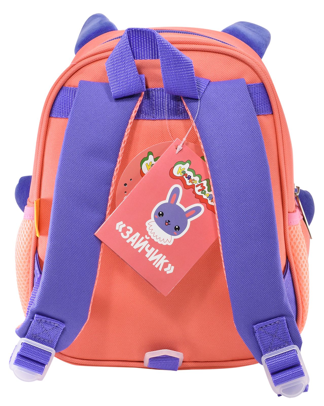 Цвет: коралловый Размер: 27x23x7 см Объем, литр: 4,50 Каркас: мягкий Декоративные элементы: аппликация Количество секций: 1 отделение Мин. партия и варианты упаковок: 1 / 20 Рюкзак Каляка-Маляка ЗАЙЧИК со страховочной лентой, 4,5 л, 27x23x7 см, мягкий, молния, для девочек