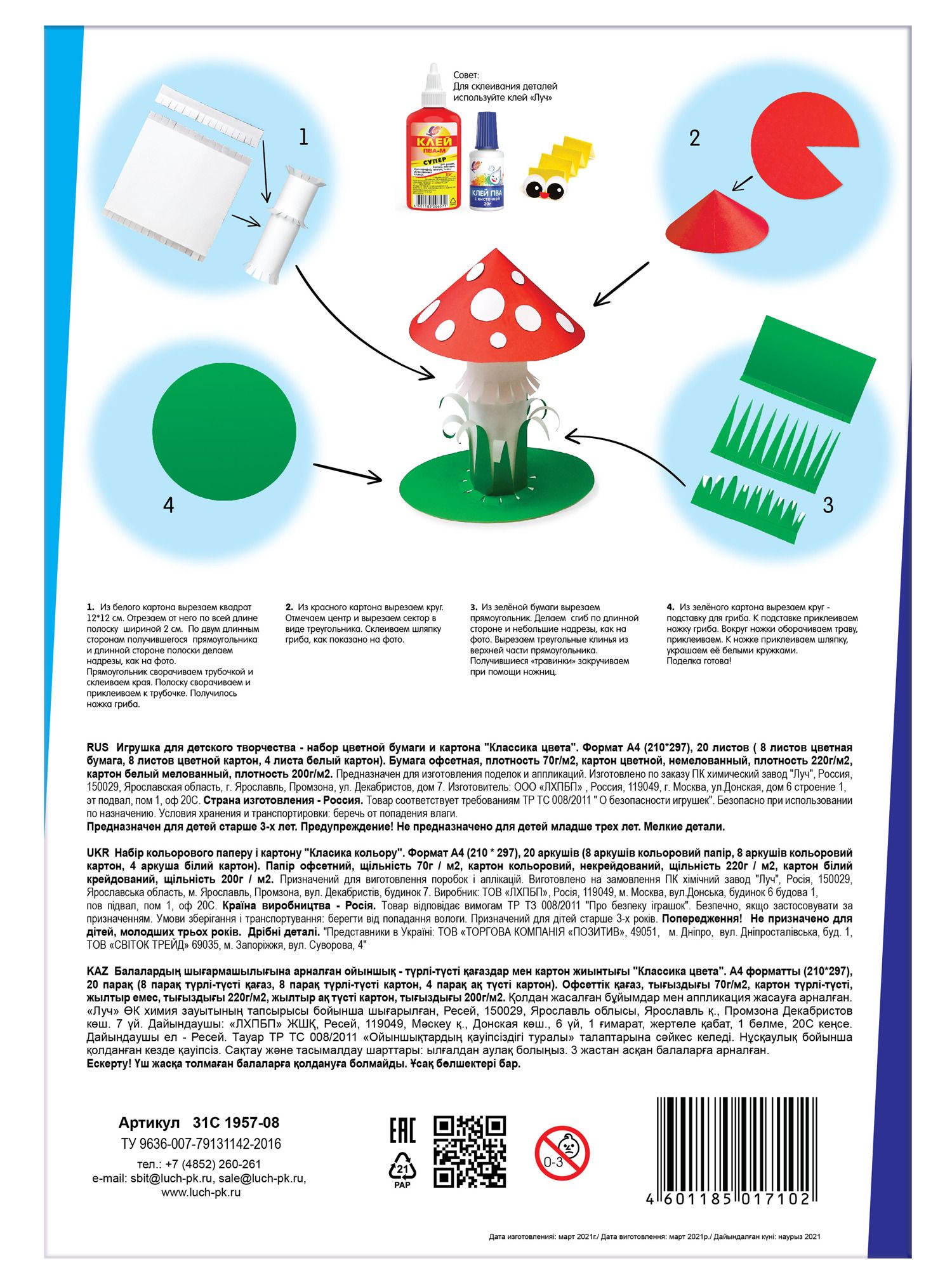 Размер: 335х265х60 мм Количество предметов: 14 Цвет корпуса: дизайн Вид товара для учебы: Набор для творчества Пол ребенка: универсальный Материал короба/портфеля: картон Мин. партия и варианты упаковок: 1 / 5 Набор для творчества Луч КЛАССИКА ЦВЕТА