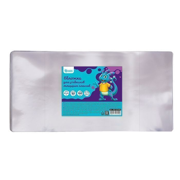Обложки упакованы по 50 штук. Также упаковка сопровождается привлекательным цветным вкладышем. На каждой обложке имеется индивидуальный штрих-код. Имеет универсальный размер, который можно легко отрегулировать по ширине учебника.