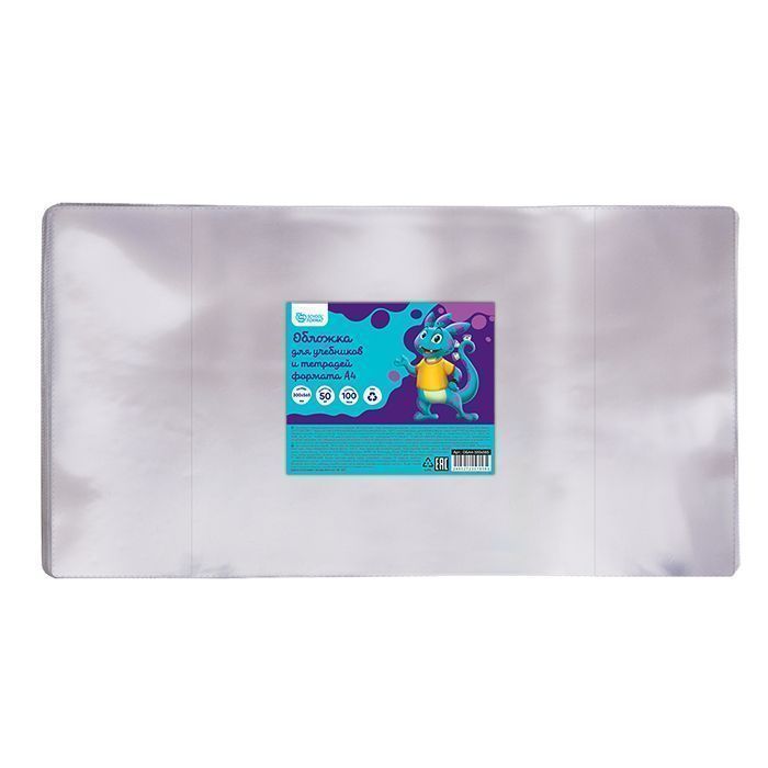 Обложки упакованы по 50 штук. Также упаковка сопровождается привлекательным цветным вкладышем. На каждой обложке имеется индивидуальный штрих-код. Имеет универсальный размер, который можно легко отрегулировать по ширине учебника.