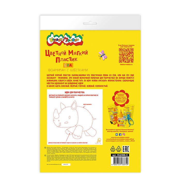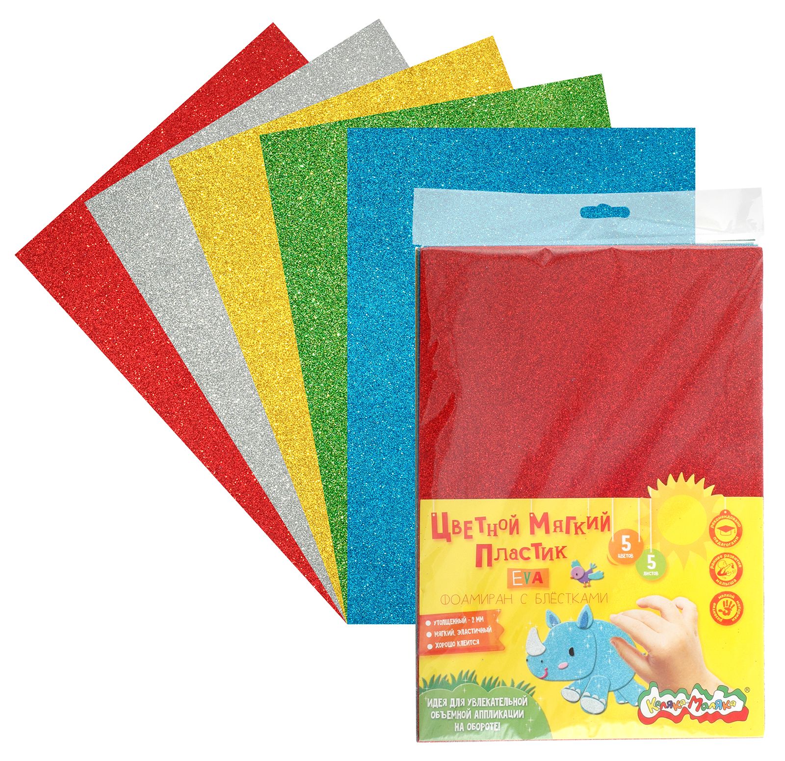 Формат: А4 Количество листов: 5 Количество цветов: 5 Наличие европодвеса: Да Спецэффекты: блёстки Упаковка: пакет Мин. партия и варианты упаковок: 1 / 200 Фоамиран/пористая резина (EVA) Каляка-Маляка А4 5 л. 5 цветов с блестками, пакет с европодвесом