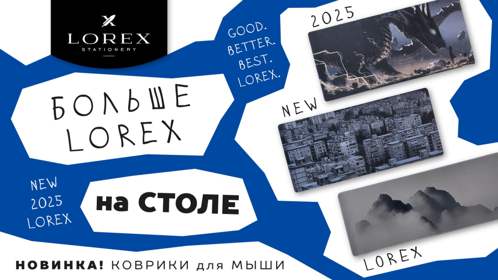 В бренде LOREX появилась новая категория — коврики для мыши. Они сочетают функциональность и стиль: прорезиненная основа надёжно фиксируется на столе, а гладкая поверхность обеспечивает лёгкое и точное скольжение — будь то офисная работа или динамичные игры.