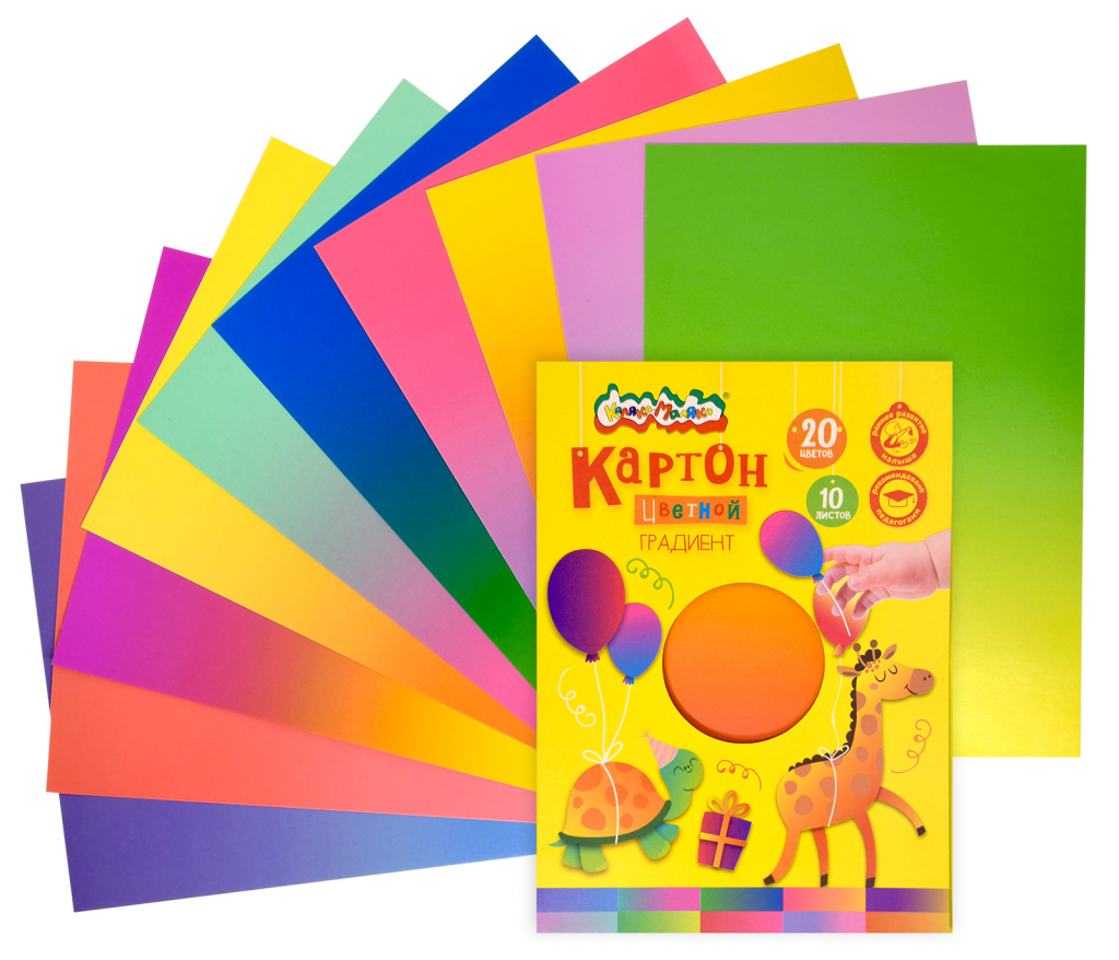 Наименование:Картон цветной Каляка-Маляка, Градиентный, А4 усеченный, мелованный, односторонний, 10 л, 20 цв, 200 г/м2