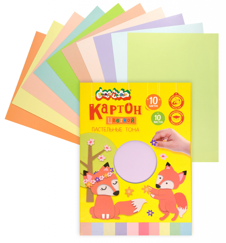 Наименование: Картон цветной Каляка-Маляка, Пастельные цвета, А4 усеченный, мелованный, односторонний, 10 л, 10 цв, 200 г/м2