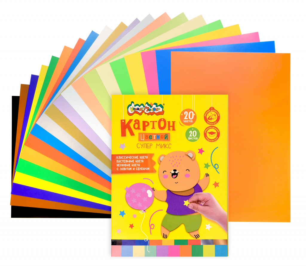 Набор цветного картона Супер Микс точно понравится тем, кто любит безграничное творчество. Набор состоит 20 листов и включает 20 различных цветов: классические, пастельные, неоновые, а также золото и серебро.