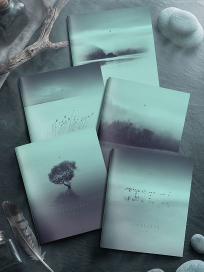 Тетрадь 48 л. А5 линия, на скрепке, офсет LOREX HAZE LANDSCAPE мелованный картон, двойная обложка, запечатка форзаца, soft touch