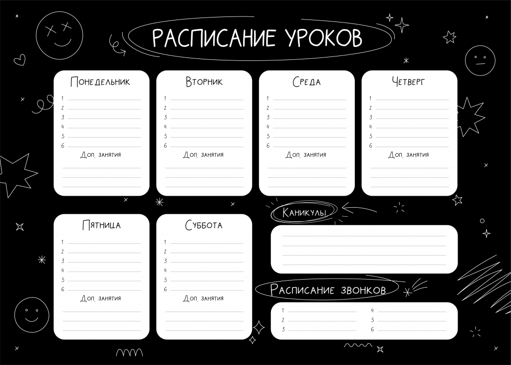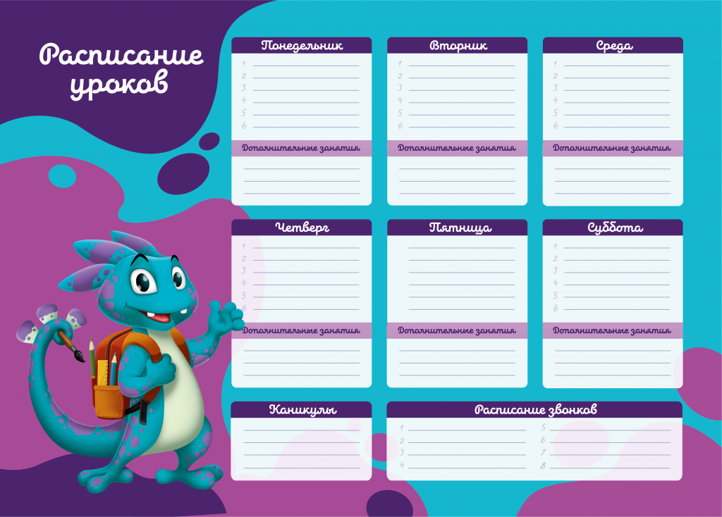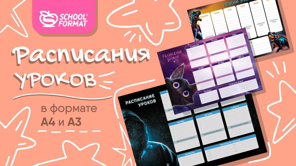 В ассортименте Schoolformat появились новые расписания уроков в форматах А3 и А4 — на плотном мелованном картоне 190 г/м². Яркое ассорти дизайнов для мальчиков и девочек делает их не только удобным инструментом для планирования, но и стильным украшением рабочего стола или комнаты. Микс двух дизайнов в одном артикуле – можно выбрать сразу все!