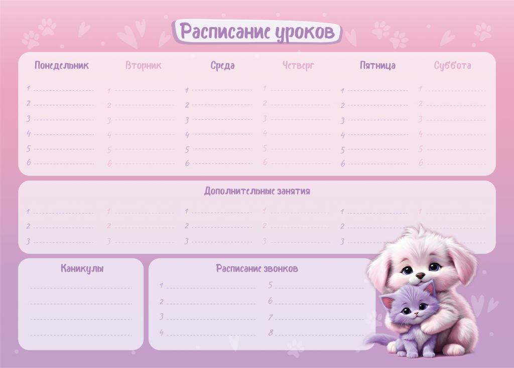 Расписание уроков А4 Schoolformat МИЛАШКИ мелованный картон