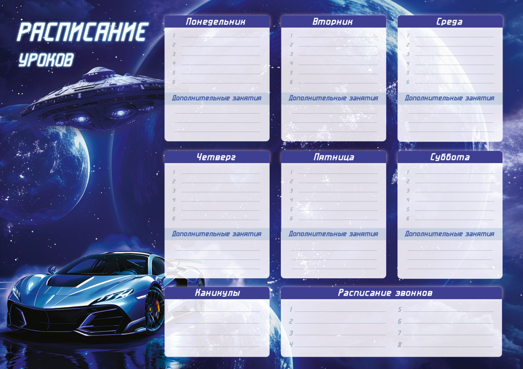 Расписание уроков А4 Schoolformat КОСМОС мелованный картон