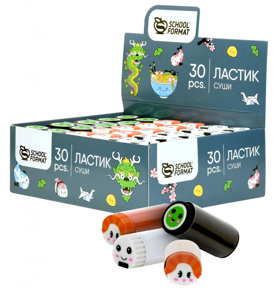 Ластик Schoolformat СУШИ, термопластичная резина, 50х22х22 мм фигурный, ассорти, мягкий, индивидуальный ШК