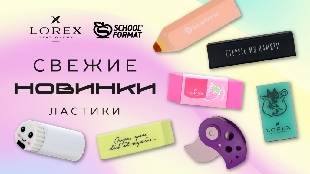 В категории ластиков сразу две хорошие новости – у LOREX и Schoolformat появились яркие новинки. Оригинальные дизайны, удобные форматы упаковки и разнообразие, которое точно привлечет внимание на полке.