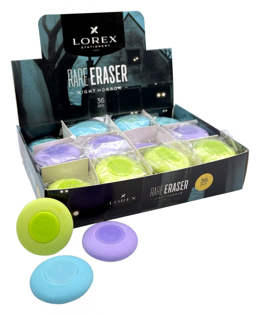 Ластик LOREX RARE ERASER NIGHT HORROR, термопластичная резина, 45х12х10 мм круглый, ассорти, мягкий, пластиковая центровка, индивидуальный ШК