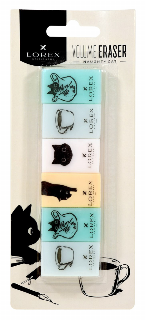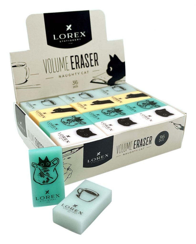 Ластик LOREX VOLUME ERASER NAUGHTY CAT ПВХ 35х21х10 мм прямоугольный, ассорти, мягкий, индивидуальный ШК