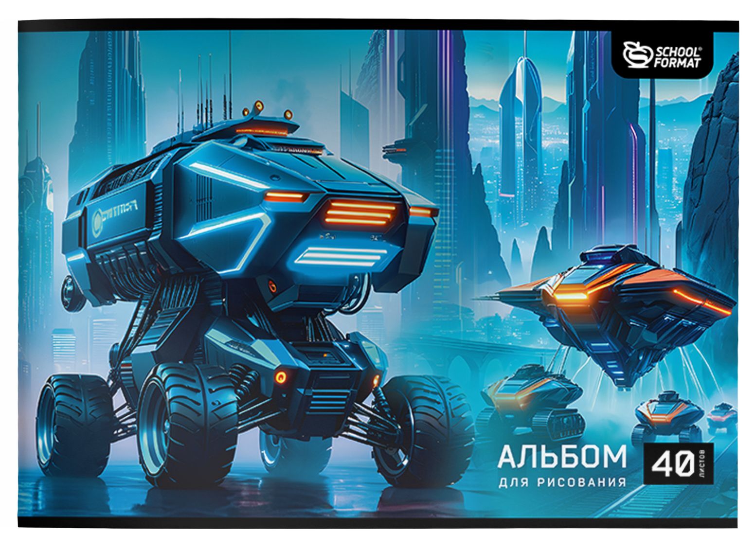 Формат: А4 Количество листов: 40 Тип крепления: скрепка Материал обложки: мелованный картон Вид продукции для творчества: Альбом для рисования Вид бумаги внутреннего блока: офсет Мин. партия и варианты упаковок: 1 / 8 / 40 Альбом для рисования 40 л. А4 на скрепке Schoolformat ТЕХНИКА КОСМОСА мелованный картон, ВД-лак, офсет