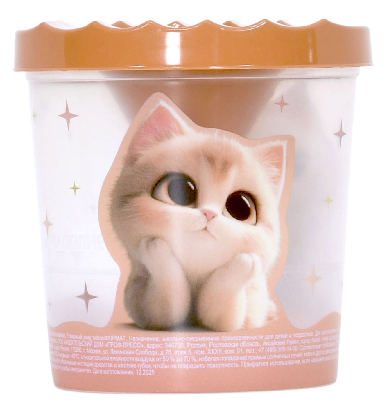 Объем, мл: 250 Цвет корпуса: прозрачный Материал: пластик Наличие принта: Да Серия: МЕЧТАТЕЛЬНЫЕ КОТЯТА Торговая марка: Schoolformat Мин. партия и варианты упаковок: 1 / 10 / 200 -