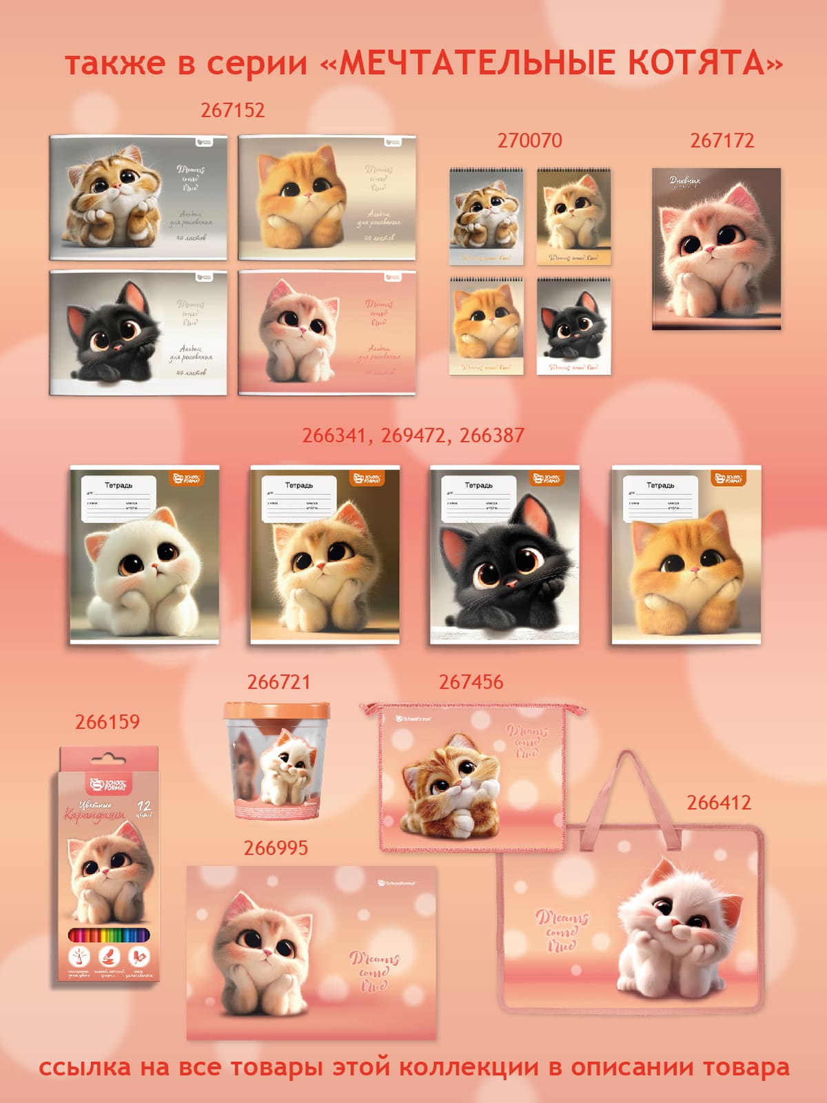 Формат: А5 Количество листов: 12 Тип крепления: скрепка Материал обложки: мелованный картон Линовка: косая линия Вид бумаги внутреннего блока: офсет Мин. партия и варианты упаковок: 1 / 12 / 240 Тетрадь 12 л. кос. лин. Schoolformat МЕЧТАТЕЛЬНЫЕ КОТЯТА мел. карт., ВД-лак