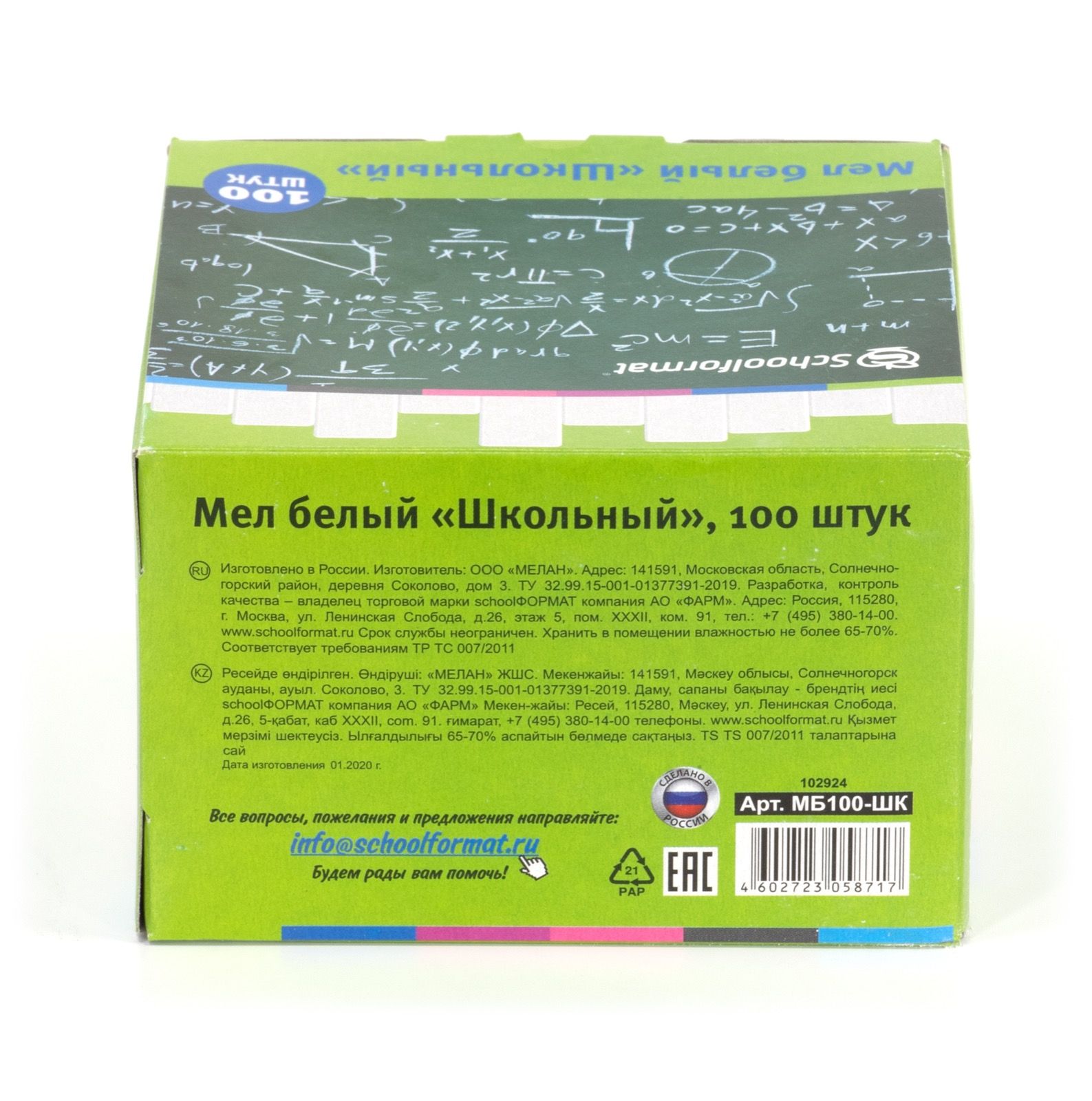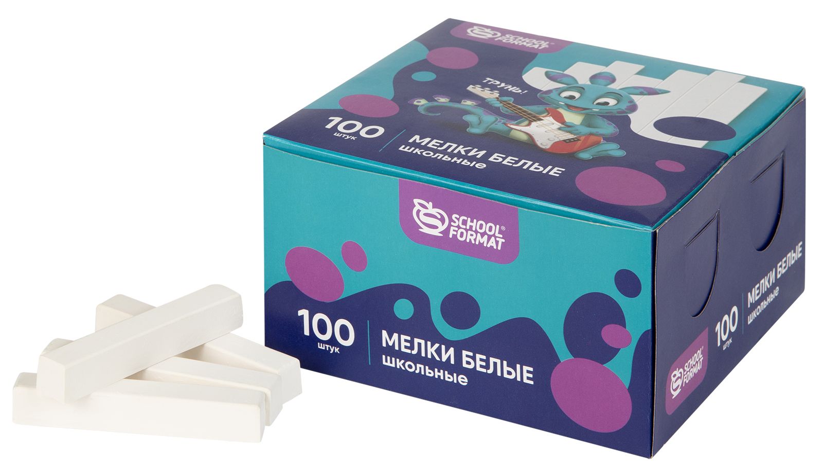 Цвет: белый Количество в упаковке, шт: 100 Диаметр, мм: 13 Длина, мм: 80 Количество цветов: 1 Наличие европодвеса: Нет Мин. партия и варианты упаковок: 1 / 10 Мелки белые Schoolformat школьные 100 шт, квадратные, в картонной упаковке