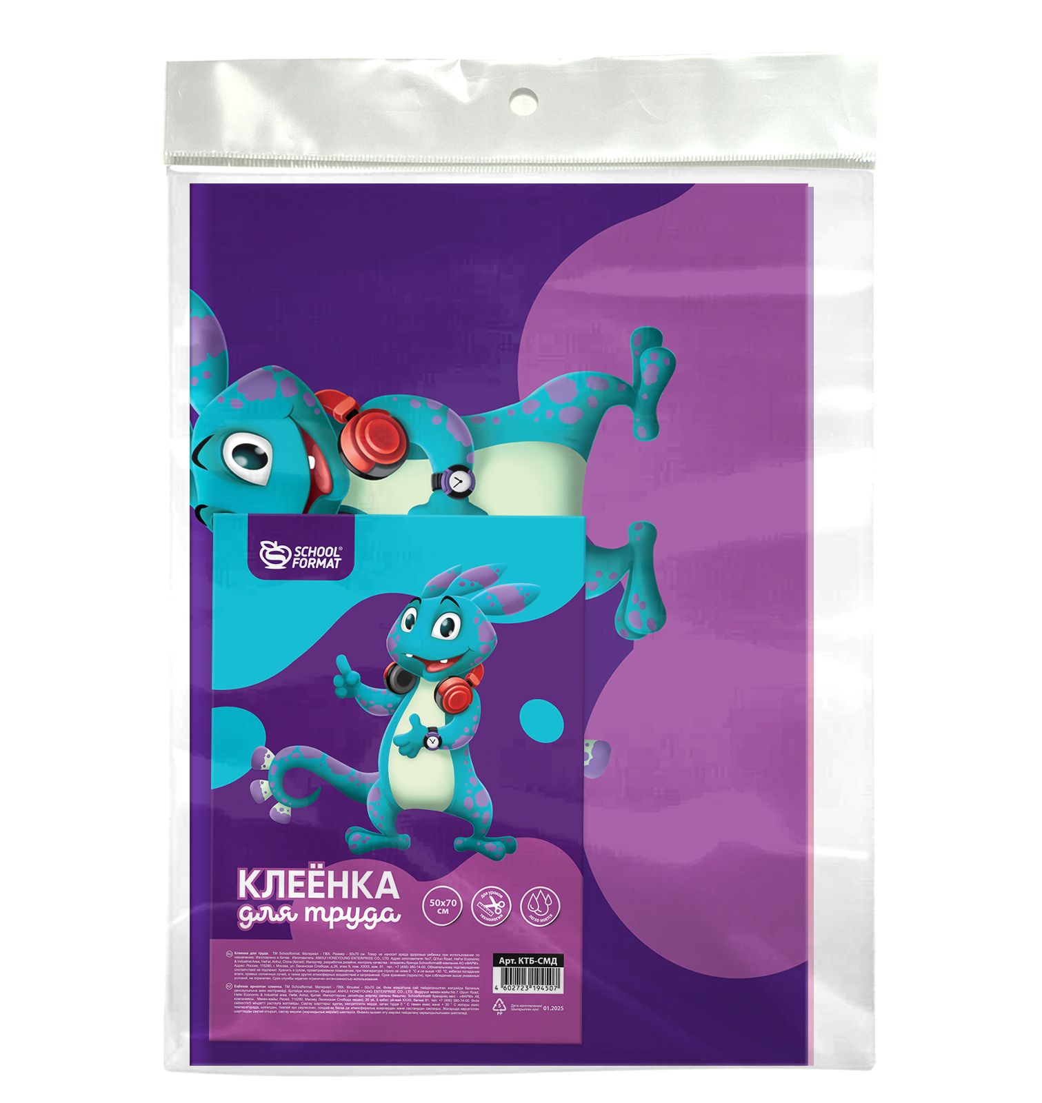 Толщина, мкм: 120 Упаковка: пакет с европодвесом Материал: ПВХ Пол ребенка: универсальный Серия: СМАРТ ДИНО Цвет основной: фиолетовый Мин. партия и варианты упаковок: 1 / 25 / 250 Клеенка для уроков труда Schoolformat СМАРТ ДИНО 50х70 см ПВХ фиолетовая универсальная