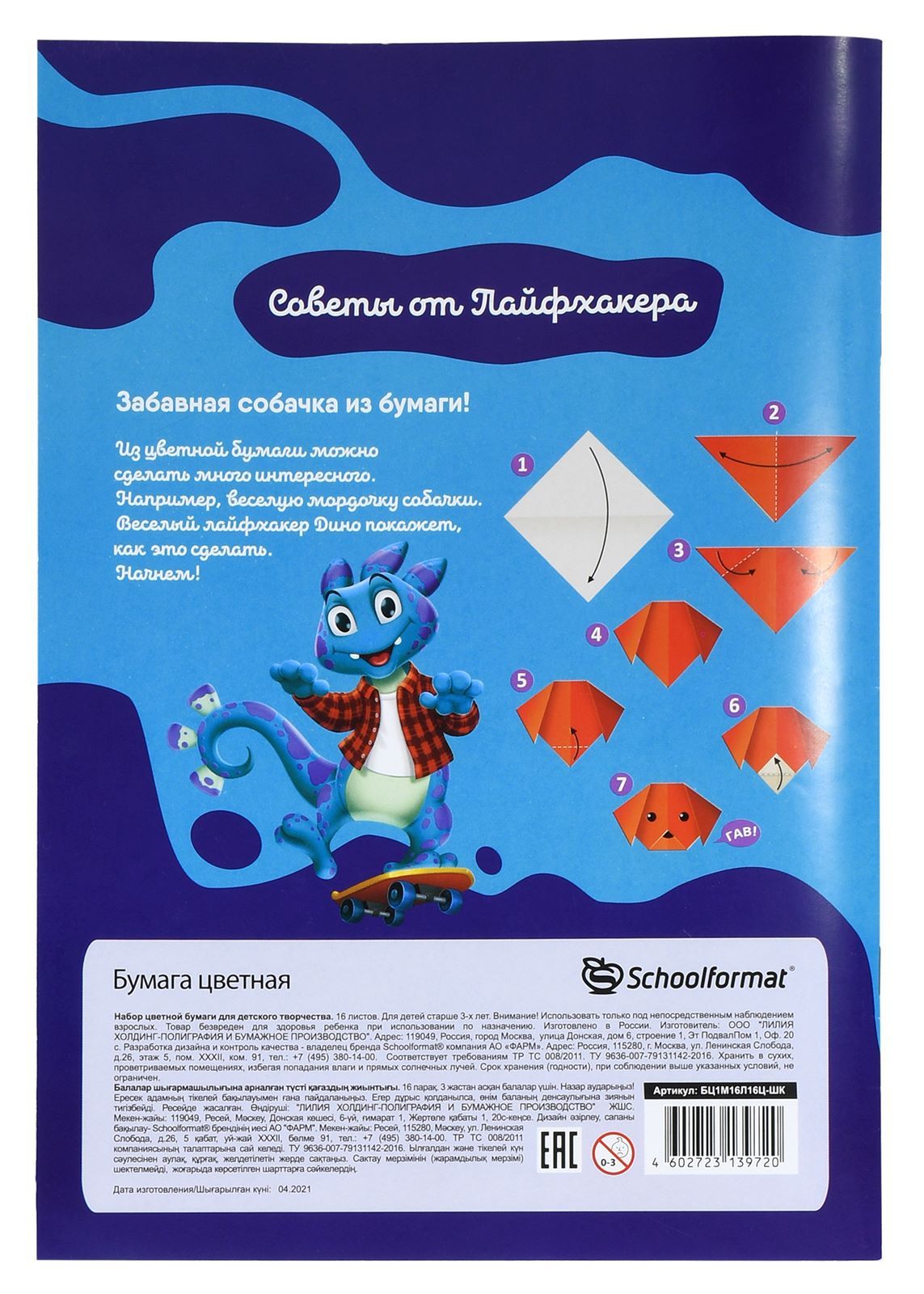 Формат: А4 Плотность, г/м2: 60 Количество листов: 16 Вид продукции для творчества: Бумага цветная Количество цветов: 16 Наличие европодвеса: Нет Мин. партия и варианты упаковок: 1 / 40 Бумага цветная 1-стор. Schoolformat мелованная 16 л. 16 цв. 60 г/м2 на скрепке