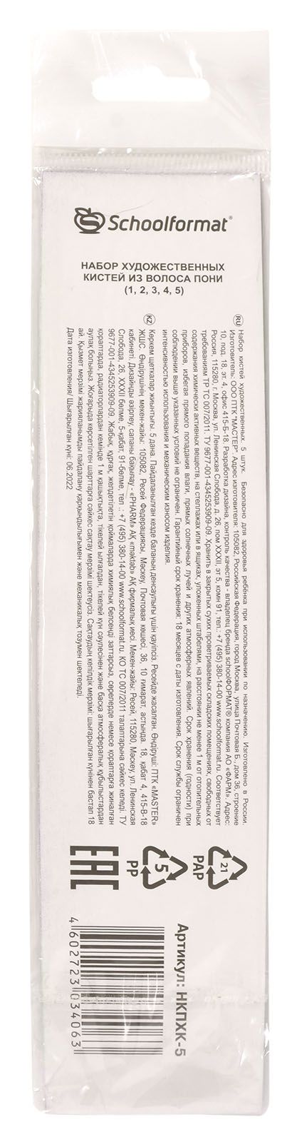 Количество в упаковке, шт: 5 Вид товаров: Набор кистей Ворс: белка Наличие европодвеса: Да Упаковка: пакет Комплектность набора кистей: № 1,2,3,4,5 круглые - белка Мин. партия и варианты упаковок: 1 / 30 / 600 Набор кистей 5 шт Schoolformat № 1,2,3,4,5 круглые - белка